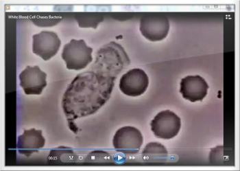 Een fraaie video van een bacterie fagocyterende granulocyt is hier te downloaden. Het is helaas niet zelf gemaakt maar afkomstig van Youtube. Klik op de afbeelding om het filmpje te starten.