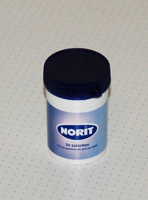 Pulverise 1 Tablet 'Norit' in a mortar and weigh 0,3gr.