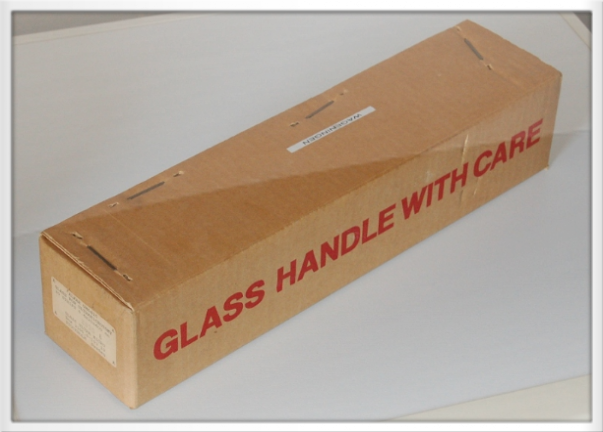 Original box with glass strips from LKB. These strips are 400 mm long, 25 mm wide and 6.4 mm thick.