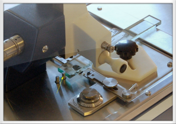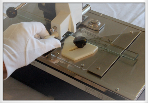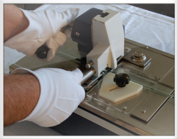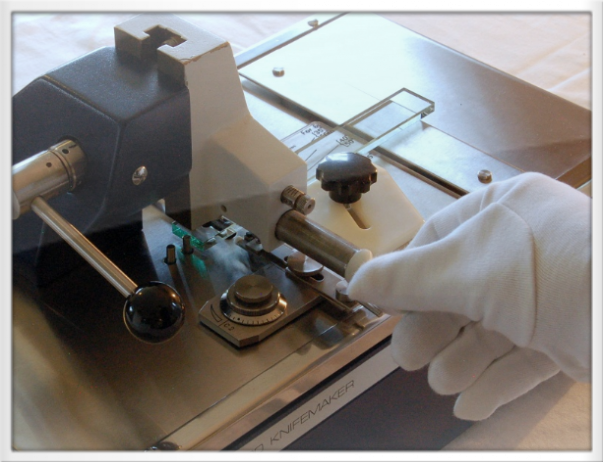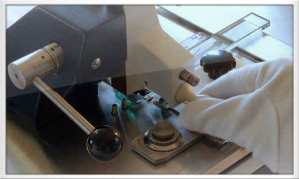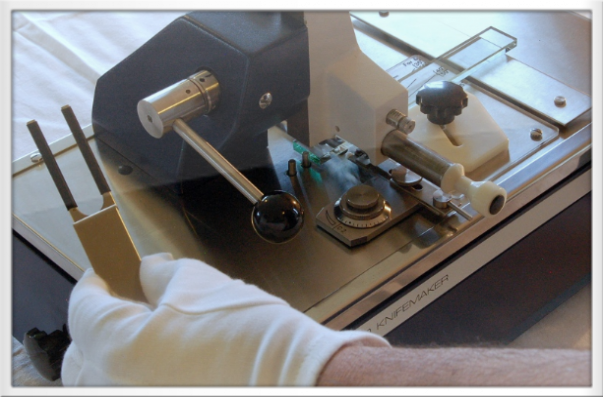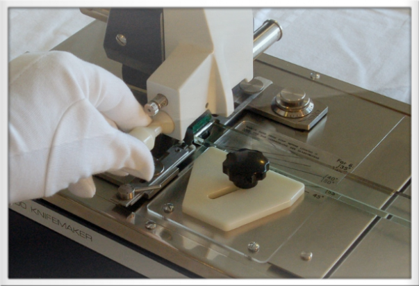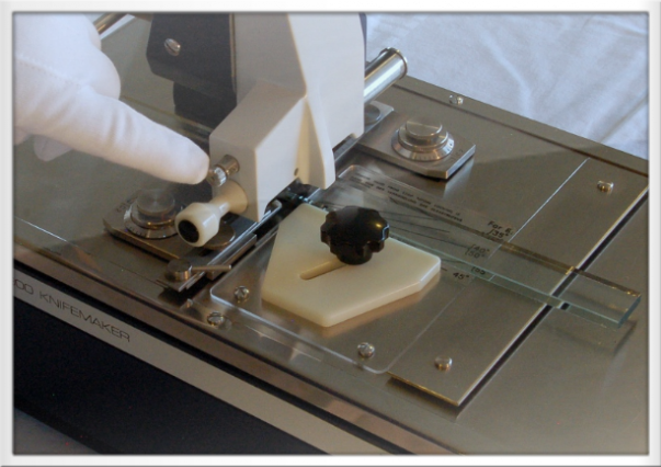 Semi-thin sections (0.5 µm - 2 µm) that can be used for light microscopy can be cut with glass knives on an ultramicrotome e.g. Reichert-Jung Ultracut E, but also on a rotational microtome e.g. LKB 2218 Historange microtome.