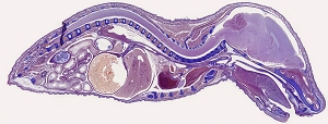 het maken van een sagittale coupe van een complete muis zodat de ligging van de diverse organen ten opzichte van elkaar in het lichaam zichtbaar worden.