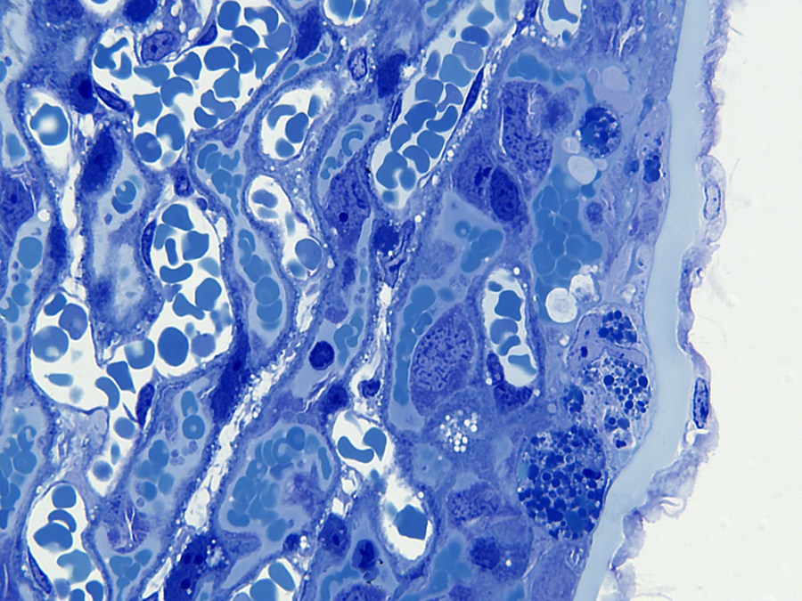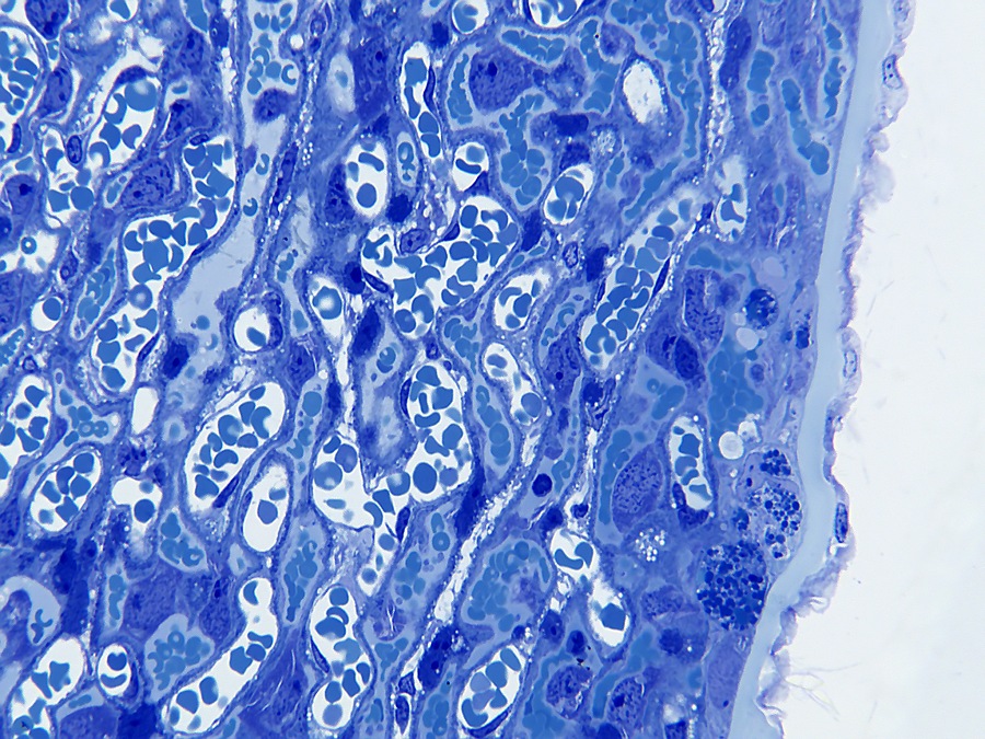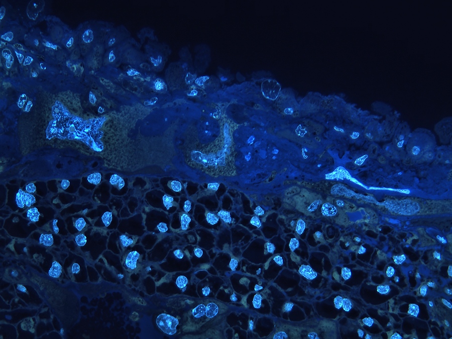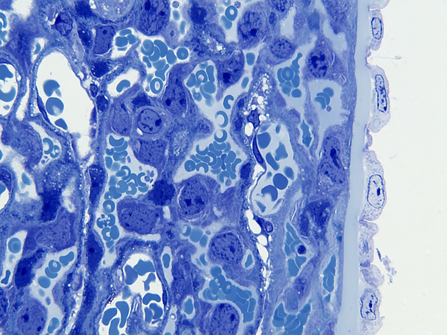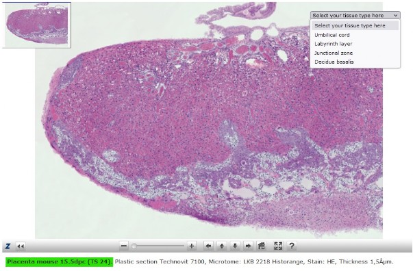 Onderstaande opname geeft een indruk van de placenta. In het beeld hiernaast kan tot op celniveau worden ingezoomed. Ook de diverse lagen zijn te bekijken.