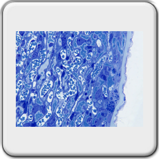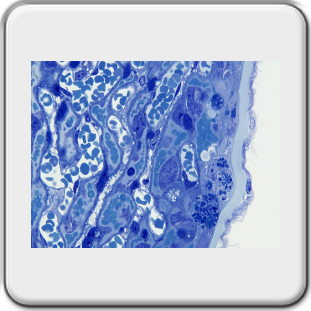 Na dehydratie tot aan ethanol 100% werd ingebed in Technovit 7100 van de firma Kulzer[5]. Coupes werden gesneden op een LKB 2218 Historange microtoom met een hardstalen mes in ‘D’ vorm.