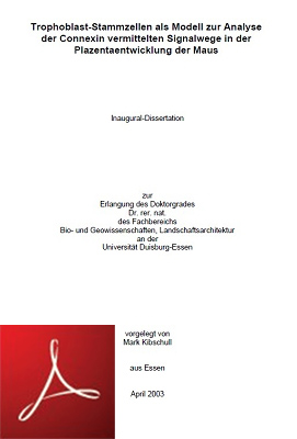 [3] Mark Kibschull, January 2003, ‘Trophoblast-Stammzellen als Modell zur Analyse der Conexin vermittelten Signalwege in der Plazentaentwicklung der Maus‘, Pag 2.