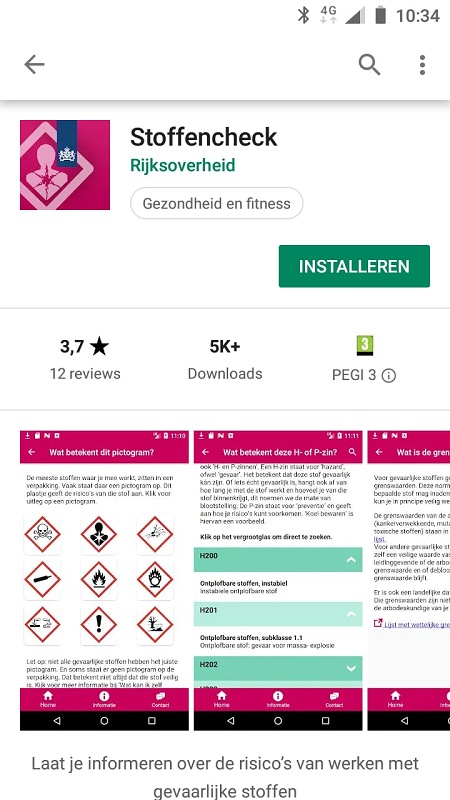Meestal is het verwerken van deze stoffen niet ongevaarlijk en verdient het aandacht. Om het 'gevaar' van deze stoffen te kunnen beoordelen en te bekijken wat je kunt doen om veilig met deze stoffen te kunnen werken heeft het Ministerie van sociale zaken en werkgelegenheid een app ontwikkeld waarin snel en eenvoudig de meeste stoffen kunnen worden opgezocht. Citaat: De Stoffencheck app geeft informatie over het werken met bepaalde stoffen: wat de risico's zijn, of je er ziek van kunt worden en welke maatregelen nodig zijn om veilig te werken. Zo wordt toelichting gegeven bij de pictogrammen die op de verpakkingen staan. Ook wordt uitgelegd wat H- en P-zinnen betekenen, wat de grenswaarden van stoffen zijn, welke tien stoffen het gevaarlijkst zijn en wat je zelf kunt doen om de risico's te beperken.