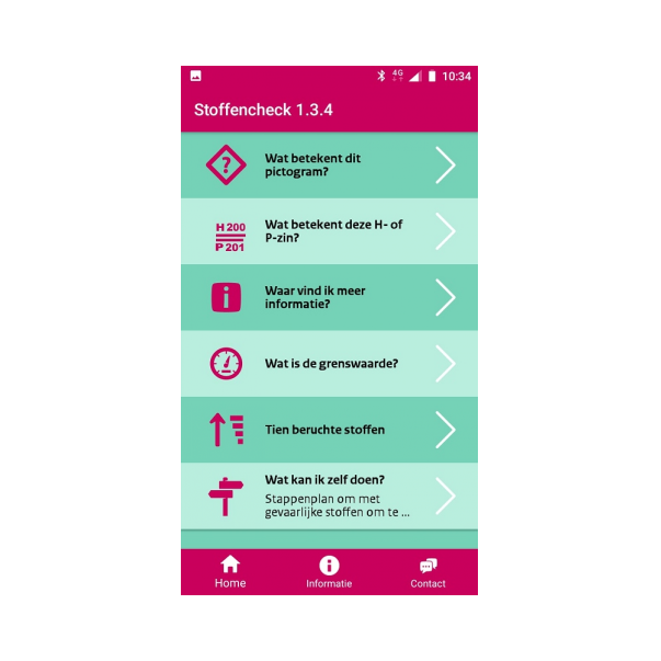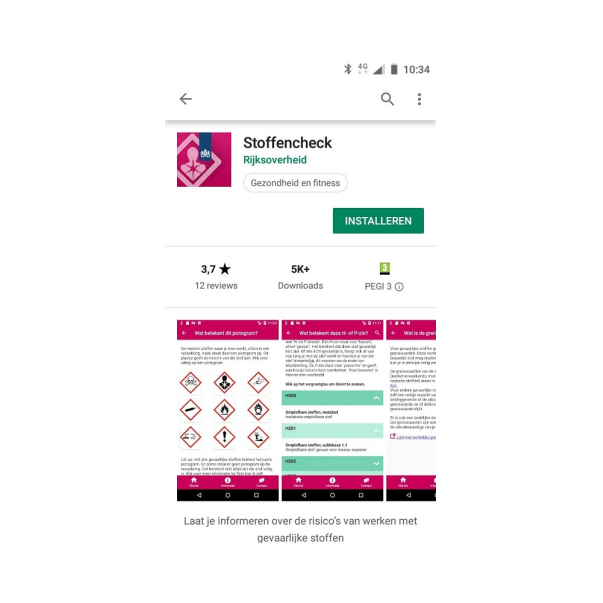 De app is gratis verkrijgbaar in de App store en Google Play Store. Zoek op 'Stoffencheck'.